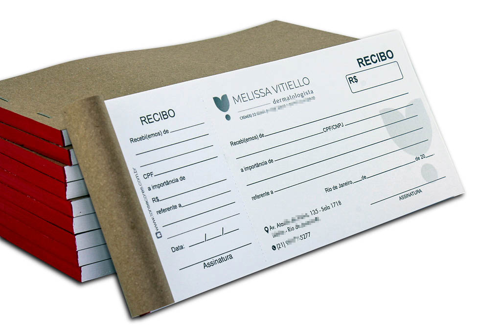 10 Blocos Recibo com Canhoto 9x20cm 50 Fls Personalizados