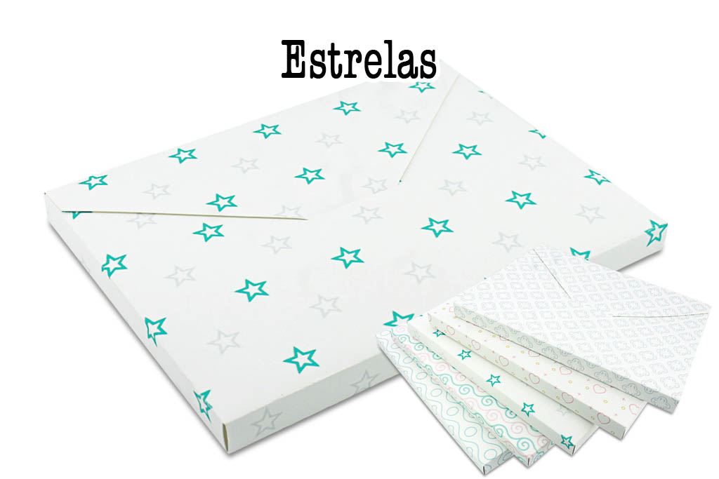 Caixa embalagem tipo envelope A5 box 1/2 meio ofício 21x16x1,5cm padrão estrelas