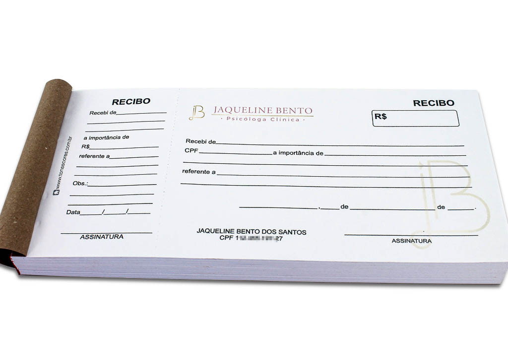 3 Blocos Recibo com Canhoto 9x20cm 150 Fls Personalizado