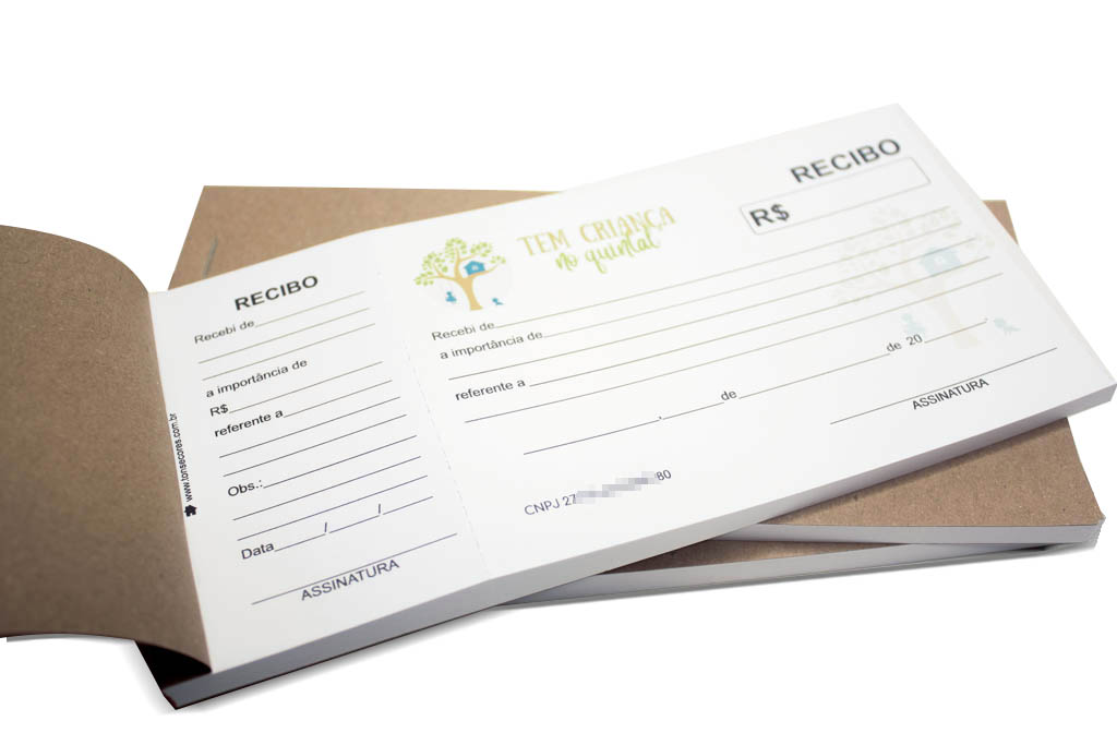 3 Blocos Recibo com Canhoto 9x20cm 50 Fls Personalizados